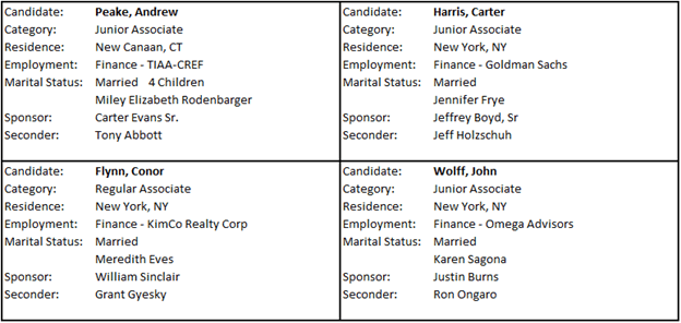 April 12th, 2016 To the Membership: In accordance with the club’s By-Laws, the following candidates are being circulated for Membership comments: